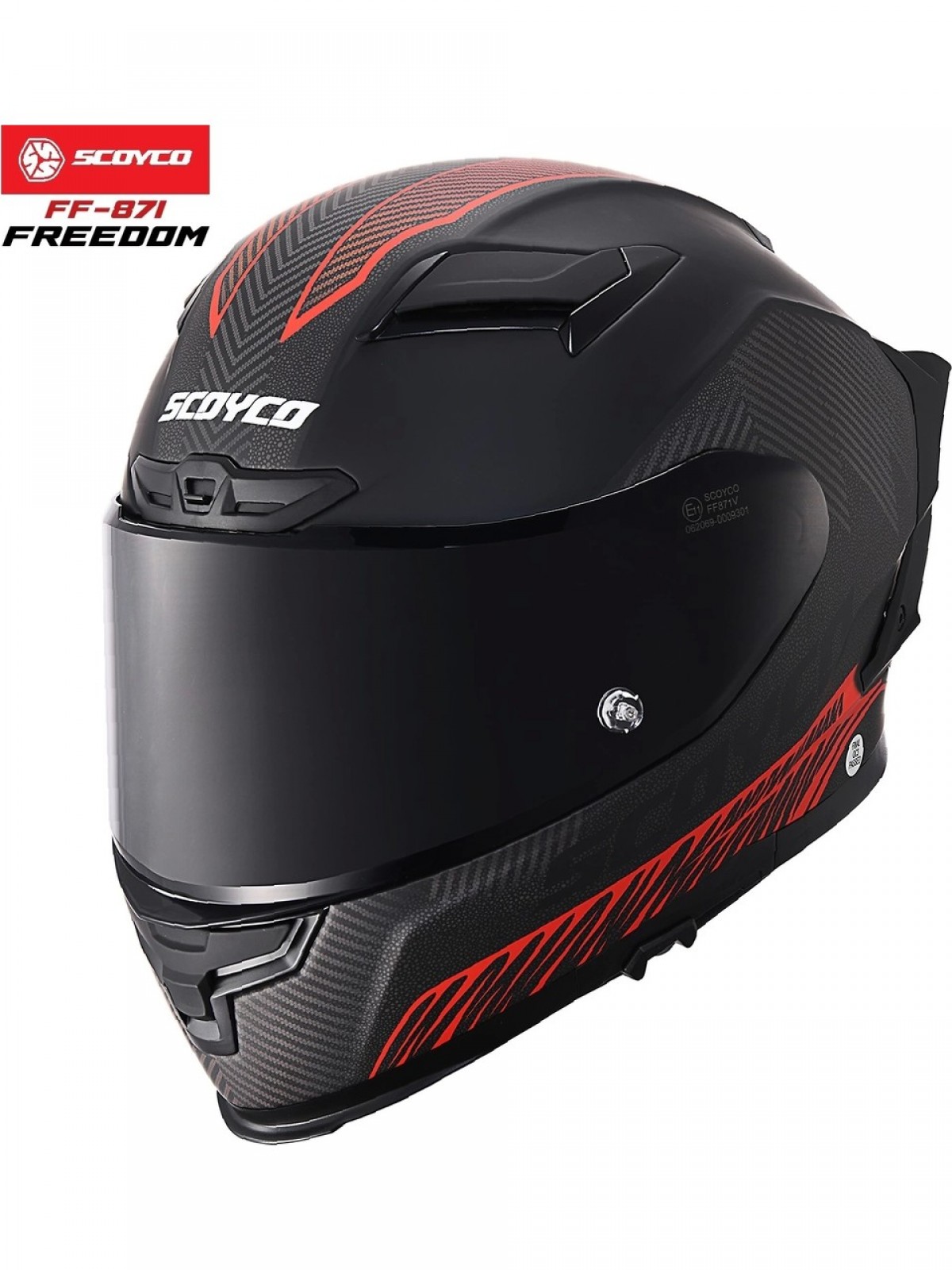 Scoyco FF-871 Freedom Mat Siyah-Kırmızı Güneş Vizörlü Kapalı Kask (Siyah Camlı)